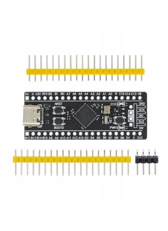 Плата разработки минимальной конфигурации — это 32-битный высокопроизводительный микроконтроллер со сверхнизким энергопотреблением серии STM32F411CEU6 на базе ядра ARM Cortex-M4 с модулем плавающей запятой FP, производительностью 125 DMIPS, 128 КБ ОЗУ, 100 МГц, флэш-памятью 512 КБ и минимум Запустите набор компонентов. Форм-фактор платы облегчает создание прототипов на беспаечной макетной плате. Разъем Type-C используется для подключения макетной платы к компьютеру и подачи питания. На плате контроллера нет переключателя вариантов загрузки, но есть кнопка, запускающая встроенный загрузчик. Чтобы запустить загрузчик, удерживайте кнопку загрузки при включении питания или нажмите кнопку сброса. Характеристики: Микроконтроллер: STM32F411CEU6 Ядро: ARM Cortex-M4 Тактовая частота ядра: 100 МГц Производительность: 125 DMIPS Блок вычислителя с плавающей точкой: присутствует Объём памяти программ: 512 Кбайт Объём оперативной памяти: 128 КБайт Количество доступных GPIO выводов: 36 Дополнительные возможности: 11 таймеров + RTC, 3xUART, 5xSPI, 2xI2S, 1xSDIO АЦП 12-бит: 2.4 MSPS Тип USB разъёма: Type-C (USB2.0 OTG) Напряжение питания: от 1.7В до 3.6В