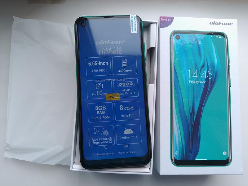 Телефон Ulefone Note 11P IPS 6.55" 8/128 ГБ 4400 mah Android 11 Сканер відбитків пальців на задній панелі. Можливо встановити 2 сім карти + micro SD карту. Процесор Helio P60.