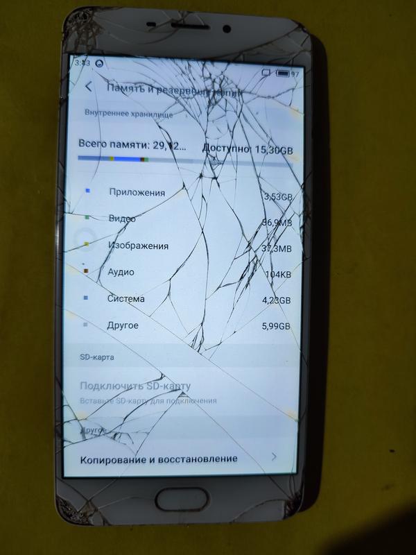 Вмикається, приймає дзвінки, пошкодженний розьєм зарядкі,трищини на сенсорі,сенсор працює весь, пам'ять 3/32гб