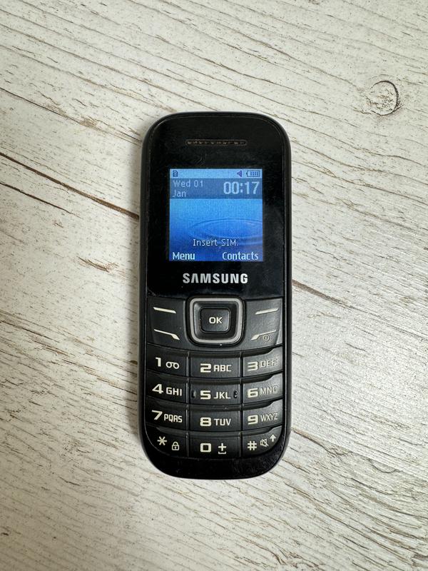 Продам оригінальний Samsung E 1200R. Привезений із Англії. Стан такий, як на фото. Телефон повністю робочий. З українськими операторами працює. В телефоні відсутня українська та російська мови. В комплекті те що на фото без коробки та зарядного. Акумулятор тримає добре. Із-за обмежень на накладні платежі, продаж обговорюємо в переписці.