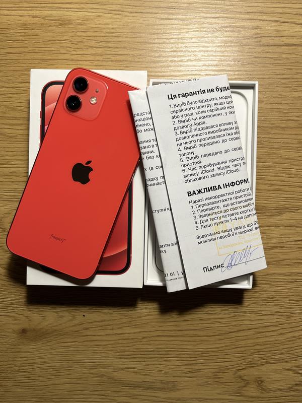 В Продажі iPhone 12 у червоному кольорі. Телефон повністю справний, оригінальний та не розбирався. З моменту покупки, був в одних руках. Працює швидко, без зависань. Підійде для щоденного використання. Можливо на подарунок. В комплект до нього, є чохли, та захисне скло 4шт. Розблокований, працює з будь-яким оператором. iCloud чистий, готовий для нового користувача. Екран – Без тріщин і сколів – Сенсор працює чітко Батарея – Стан акумулятора: 74% – Заряд тримає нормально. За бажання можна недорого замінити батарею для збільшення автономності. Камери – Працюють відмінно – Фото та відео без дефектів Звук та Face ID – Динаміки гучні – Мікрофони працюють добре – Face ID справний Корпус – Є незначні подряпини від використання, стан на фото – Загалом виглядає доглянуто Комплект – Чохол у подарунок Доставка / Зустріч – Можлива Доставка – Можлива особиста зустріч у місті Пишіть — відповім швидко. Торг можливий.