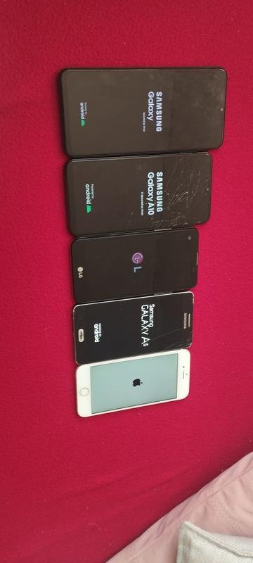 продам робочі телефони деякі з дифектами Samsung a13 робочий є подряпини і слід від чехла Samsung a10робочий розбитий екран на роботу не впливає Lg x screen робочий є тріщина на екрані на роботу не впливає Samsung a5 робочий є тріщина на екрані і залипають кнопки і є подряпини на роботу не впливає iPhone 6s робочий є тріщина на екрані і не має задньої камери ЦІНА ЗА ВСІ ТЕЛЕФОНИ Є ТОРГ МОЖНА КУПИТИ ВІДДІЛ НО