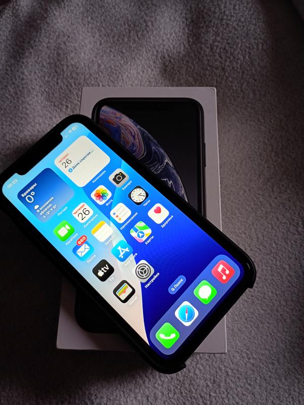 Смартфон iPhone xr чорного кольору на операційній системі ios від компанії Apple. В хорошому стані, дисплей і задня частина в ідеалі, рамка трохи потерта від чохла по боках,не розбирався ні разу нічого не мінялося ,один власник , АКБ 80% 2тис циклів тримає добре на фото видно ,комплект заводський-телефон , коробка, зарядка, перехідник навушників ,блок живлення, навушників вже не має.