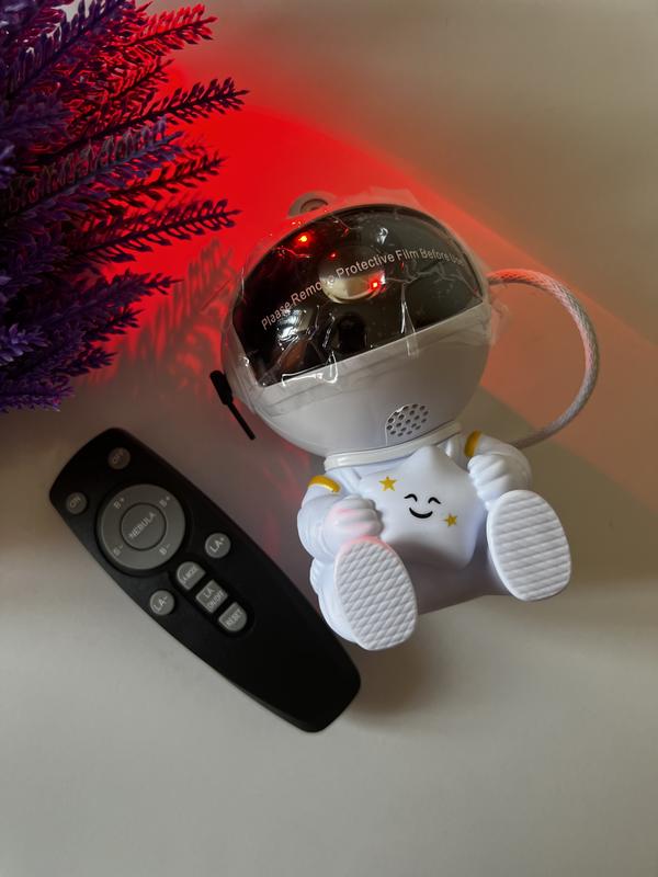 Несколько режимов освещения: проектор предлагает несколько вариантов освещения, что позволяет настроить атмосферу в комнате под любое настроение; Стильный дизайн: выполненный в виде космонавта, он станет стильным акцентом в интерьере; 360° Регулировка головы: голову космонавта можно поворачивать на 360°, что позволяет направить проекцию в любую точку комнаты. Проектор имеет восемь различных вариантов проекции, создающих различные эффекты звездного неба; Настройка яркости: вы можете настроить яркость туманности и звезд, что позволяет создать идеальную атмосферу; Регулировка скорости вращения: возможность изменять скорость вращения туманности или вообще отключить вращение; Питание от USB: устройство работает от USB, что делает его удобным в использовании в любом месте. Комплектация: в комплекте с проектором вы получите пульт дистанционного управления, который обеспечивает удобную и простую настройку устройства. Пульт позволяет изменять режимы проекции, настраивать яркость и скорость вращения, включать и выключать устройство на расстоянии.