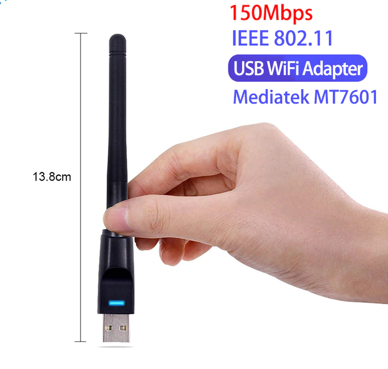 Виробник: Realtek Тип комплектуючих: Адаптери Кілька примірників у наявності USB WIFI адаптер на чипі МТ-7601 з поворотною антенной на 2dbi і світлодіодом синього кольору. Призначений для з'єднання переважної більшості сучасних супутникових і DVB-T2 тюнерів (U2C uClan, Sat-Integral, OpenFox, Tiger), медіаплеєрів, персональних комп'ютерів, ноутбуків, ігрових приставок та іншої техніки до бездротових мереж інтернет. Виконаний з високоякісного пластику в класичному чорному кольорі з світлодіодом синього кольору для індикації стану адаптера. ТЕХНІЧНІ ХАРАКТЕРИСТИКИ: - Підтримка протоколів передачі IEEE802.11 b/g/n. - Швидкість з'єднання до 150 Мбіт/с. - Вбудована 2dBi антена. - Підтримка протоколів шифрування CCA, 64/128/152bit WEP, WPA/WPA2, WPA-PSK/WPA2-PSK. - Підтримка QSS and WPS.