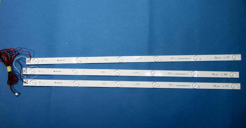 LED подсветка для телевизора 32" дюйма 6-led ламп 3-x планки по 590мм длиной. Напряжение одного диода: 3V Длина планки: 590мм. Расстояние между центрами линз: 110мм. Маркировка планок: MG-32D2806V2C3B59018M-Y MG-32D280601W59018M36A Устанавливается на матрицах: Подсветка подойдет к моделям: GP-3288 CAIRI32 BG32A100 AP-32W AP-32P