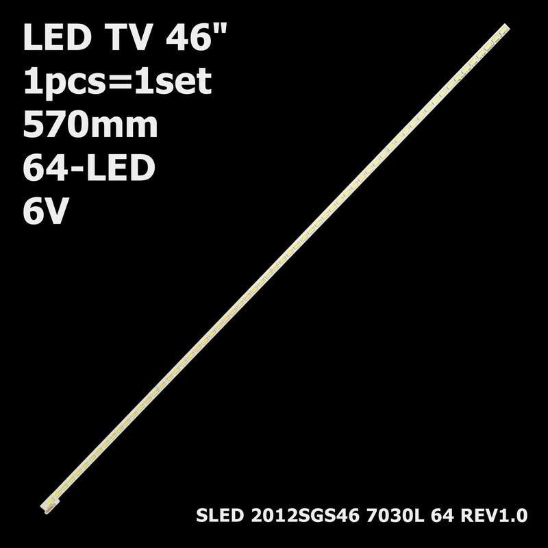 Артикул: ART-12001 Тип підкладки: алюміній Довжина планок: 570 мм Ширина планок: - У вузькій області: 7 мм - У широкій області: 10 мм Напруга одного світлодіода: 6V Кількість контактів на роз'ємі: 5 pin Кількість світлодіодів на планці: 64 LED Відстань між світлодіодами по центру: 9 мм Відстань між центром 1-го та останнього LED: 554 мм Маркування планок: - SLED 2012SGS46 7030L 64 REV1.0 Підсвітка підійде до моделей: - Haier: LE46A700K, LE46A700 - Konka: LED46X5000D - Philips: 46PFL5527T/60, 46PFL5007H/12, 46PFL5507T/60, 46PFL5537T/60, 46PFL5537K/12 - Samsung: LH46DECPLBA/ZA, LA46N71BX - Sanyo: DP46142 SSD46TA-00 - TCL: L46E5000-3D, L46V7300A-3D, L46U4010A-3D, L46U4000A-3D - Thomson: 46FU7765 - Toshiba: 46HL150, 46KL300C, 46EL300, 46EL300C, 46L5200U, 46L5200U1, 46TL968, 46ML933RB, 46TL938RB, 46TL963RB, 46ML963RB, 46PS20V1, 46TL938G, 46TL933, 46HL150C, 46TL963B, 46TL963G, 46TL966B, 46TL966G, 46TL968B, 46TL968G та інші. Аналоги планок: - BN96-00998A - LJ07-00998A - LJ64-03471A (радіатор) - LJ64-03495A (радіатор) - LJ07-01041A (радіатор) - LJ07-01042A (радіатор) - STS460A89 64LED, STS460A89_64LED - STS460A89_64LED_L_type_rev.4_120410_LJ07-01042A - STS460A89_64LED _ RTYPE _ REV.4_120410_LJ07-01041A (LTYPE, LJ07-01042A) Підсвічування матриці (панелі): - LTA460HQ18, LTA460HQ20, LTA460HN05, LTA460HW04, LTI460HN06 УВАГА: Перед продажем кожна планка пройшла перевірку своєї працездатності за допомогою спеціального тестера. Наголошуємо, що не рекомендується використовувати пристрої, які не призначені для цього, для перевірки світлодіодних лінійок. В нашому асортименті є спеціальні пристрої, призначені саме для перевірки працездатності LED-підсвітки. Також рекомендуємо перевірити довжину планок, відстань між центрами лінз, які зазначені в описі товару, а також переконатися, що конектор для підключення відповідає фото і візуальному розташуванню отворів для кріплення. Варто зазначити, що на одному телевізорі можуть бути встановлені різні види планок, а також відстань між центрами лінз може не збігатися, особливо для деяких бюджетних моделей телевізорів. Також рекомендуємо перевірити довжину планок, відстань між центрами лінз, які зазначені в описі товару, а також переконатися, що конектор для підключення відповідає фото і візуальному розташуванню отворів для кріплення. Варто зазначити, що на одному телевізорі можуть бути встановлені різні види планок, а також відстань між центрами лінз може не збігатися, особливо для деяких бюджетних моделей телевізорів.