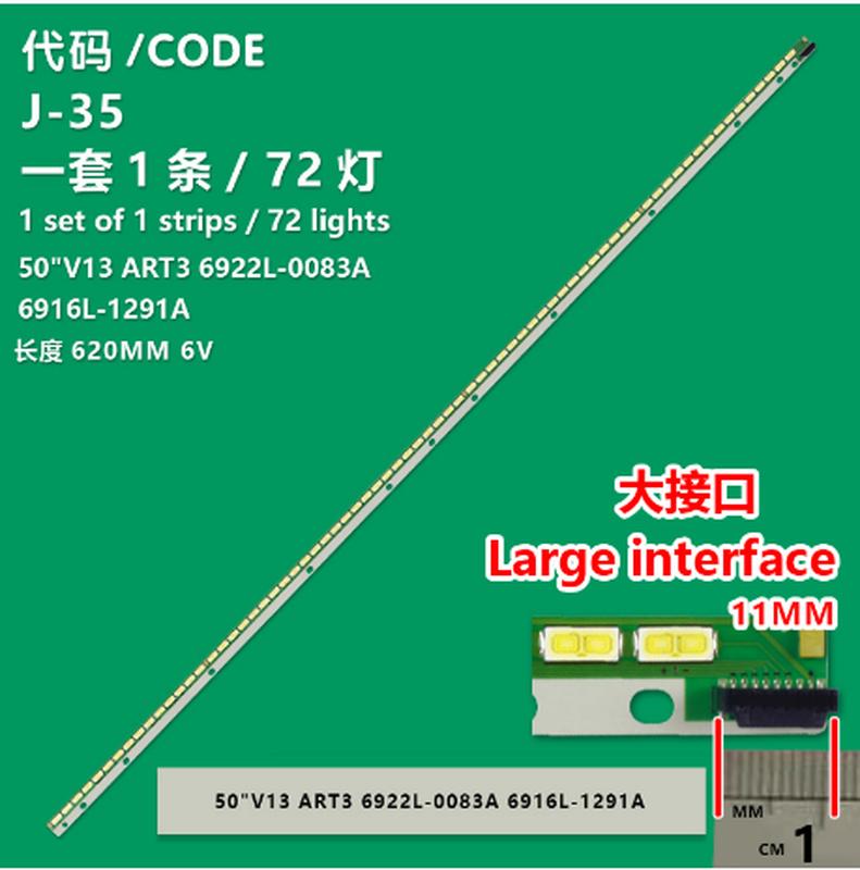 Ціна за комплект з 1-ї планки Тип підкладки: алюміній Довжина планок: 620 мм Ширина планок: 11 мм Напруга одного світлодіода: 6V Зверніть увагу, є два типи роз'ємів, перевірте їх з вашим. Ширина роз'єму для підключення: 11 мм Маркування планок: - 50" V13 ART3 Edge REV**********C 6916L1291A Підсвітка підійде до моделей: - Philips: 50PFL5008T/12, 50PFL5008, 50PFL5038, 50PFL5028, 50PFL5008D, 50PFL5008D/56, 50PFL5008D/79, 50PFL5008D/98, 50PFL5008K, 50PFL5008K/12, 50PFL5008T, 50PFL5008T/60, 50PFL5038K, 50PFL5038K/12, 50PFL5038T, 50PFL5038T/12, 50PFL5038T/60, 50PFL5028K, 50PFL5028K/12, 50PFL5028H, 50PFL5028H/12, 50PFL5028T, 50PFL5028T/60 - Sony: KDL-50R550, KDL-50R550A, KDL-50R556, KDL-50R556A та інші. Аналоги планок: - 6922L-0083A - 6916L-1291A - 6922L-1291A - 6922L1291A Підсвічування матриці (панелі): - LC500EUD - LC500EUD (FF) (F3) - LC500EUE(FF)(F1) - LC500EUD-FFF1 - LC500EUD-FFF3 - LC500EUE-FFF1