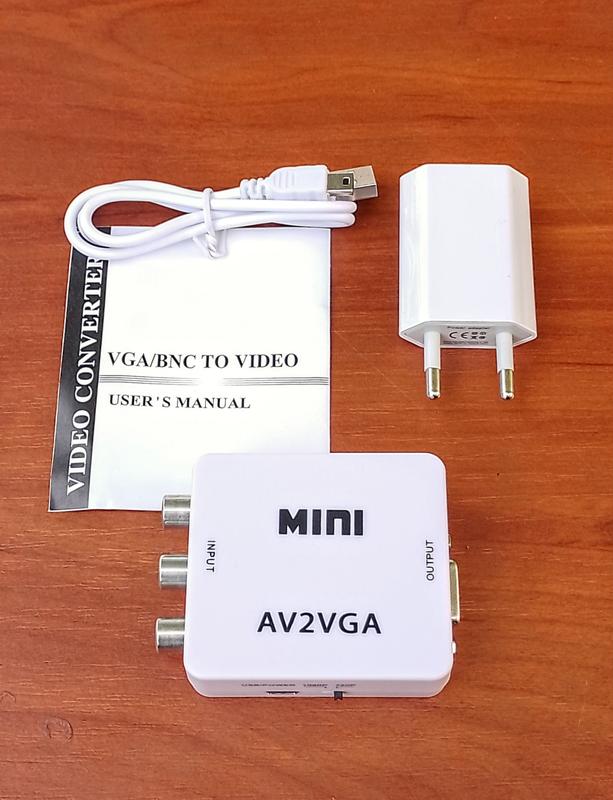 новий відеоконвертер до монітора AV-VGA (RCA/тюльпан на VGA) дає змогу під'єднати пристрої за аналоговим входом 3RCA (тюльпани) на VGA вхід (монітора,тв.) Під'еднувався за для перевірки до старенького монітору,підключалися тюнер т2 та ігрова консоль play station 2 (фото 4-8) Интерфейси 3 rca (вход) vga (вихід) 3,5 Jack (аудіо) mini usb (живлення 5v) ричажок (перемикач роздільної здатності 1080p,720p) комплектація; 1)конвертер 2)шнур живлення 5v. 3)інструкція користувача (англ.мова)