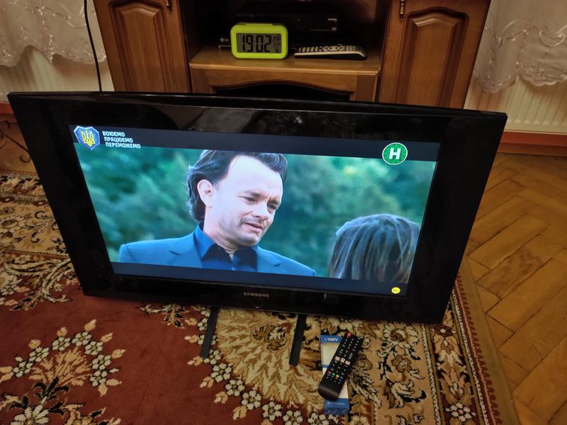 Телевізор LCD Samsung оригінальний. Діагональ екрану 32 дюйми екран. Кабель живлення іде у комплекті з телевізором. Пульт дистанційного керування новий.