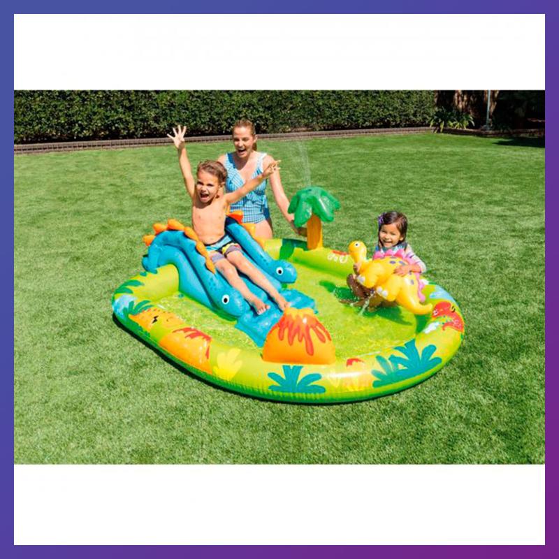 Детский надувной игровой центр с бассейном и горкой Intex 57166 Динопарк Предназначенный для детей старше годика, абсолютно безопасный надувной игровой центр Intex 57166 - отличный способ провести время дома в жаркую погоду с удовольствием и максимальной пользой для ребенка. Такой игровой комплект идеально подходит как для домашнего использования во дворе и на даче, так и для поездок на озеро за пределы города. Благодаря суперпрочным материалам стенки центра легко выдерживают значительную нагрузку веса до 54 кг. Возле горки специальный надувной коврик для смягчения съезда. Рельефное, крепкое дно, заполняемое водой, обеспечит максимум комфорта Вашему маленькому капризнику. Представленная модель игрового центра разработана из износостойкого материала ПВХ, который при нагревании не выделяет едких, химически опасных компонентов, поэтому веселье на воде не повредит вашему малышу. К надувной пальме есть возможность подключить фонтан, для работы которого просто необходимо подключить садовый шланг. Характеристики: - объем: 143 л (при заполнении 80%); - высота бортиков: 15 см; - размер в надутом виде: 191*152*58 см; - максимальная нагрузка: 54 кг; - надувная горка; - надувная игрушка в форме динозавра; - надувной навес в форме пальмы под которым можно спрятать от жарких лучей и из него льется фонтан; - материал: высококачественный винил ПВХ толщиной 0,28 см; - не надувное дно; - силиконовый клапан 2в1; - воду удобно сливать через специальный клапан для слива; - одна воздушная камера; - имеется заплатка для устранения мелких пробоин; - тип подключения: без выхода подключения фильтр-насоса; - насос Вы можете докупить в нашем магазине; - подстилку X-Treme 28909 для защиты дна от проколов можно докупить в нашем магазине; - детям от 1 года; - вес с упаковкой: 3,1 кг. Преимущества модели: Надувная горка для детей Красочный дизайн понравится Вашему малышу Много разнообразных игр Весь каталог детских бассейнов и игровых центров вы можете посмотреть здесь ↓↓↓ ## ## Для оформления заказа звоните по телефонам: +38********** +38********** Или нажимайте кнопку КУПИТЬ и наш менеджер свяжется с Вами Регион доставки: Киев, Одесса, Харьков, Днепр, Запорожье, Львов, Кривой Рог, Николаев, Мариуполь, Винница, Херсон, Полтава, Чернигов, Черкассы, Хмельницкий, Житомир, Черновцы, Сумы, Ровно, Каменское, Ивано-Франковск, Кропивницкий, Кременчуг, Тернополь, Луцк, Белая Церковь, Мелитополь, Ужгород, Никополь, Славянск, Бердянск, Павлоград, Бровары, Каменец-Подольский, Александрия и многие другие
