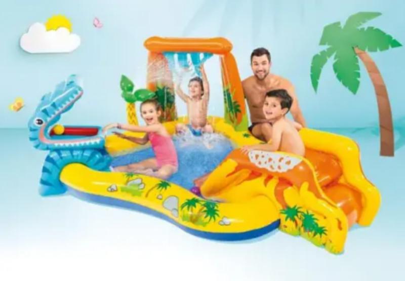 Для замовлення пишіть в повідомлення. Відправка Новою Поштою, оплата при отриманні без передплат. Надувний, ігровий центр Динозаври, 249-191-109см, з гіркою, водоспадом та пальмою-фонтаном, підключається до садового шлангу, м'ячики Fun Ballz-6шт Діаметр 191 см, глибина 109 см. У комплекті: гірка, бризкалки, ігровий модуль "Голодний динозавр" комплект кульок 6 штук, ремонтний комплект Насос у комплект не входить Вага в упаковці: 5,03 кг Ігровий центр має у своєму розпорядженні все необхідне для купання та ігор Ваших малюків у спекотні літні дні. Ігровий центр призначений для активних ігор одного або двох дітей віком від 3 років. Центр є надувною конструкцією – м'якою та безпечною. Якщо до ігрового центру підключити звичайний садовий шланг, то вийде басейн з маленьким водоспадом. Спеціальний водосток запобігає переливанню басейну. У комплект входить шість різнокольорових пластикових м'ячиків. Місткість басейну: 272 л. (максимальний рівень води: 16 см). Максимальне навантаження: 81 кг