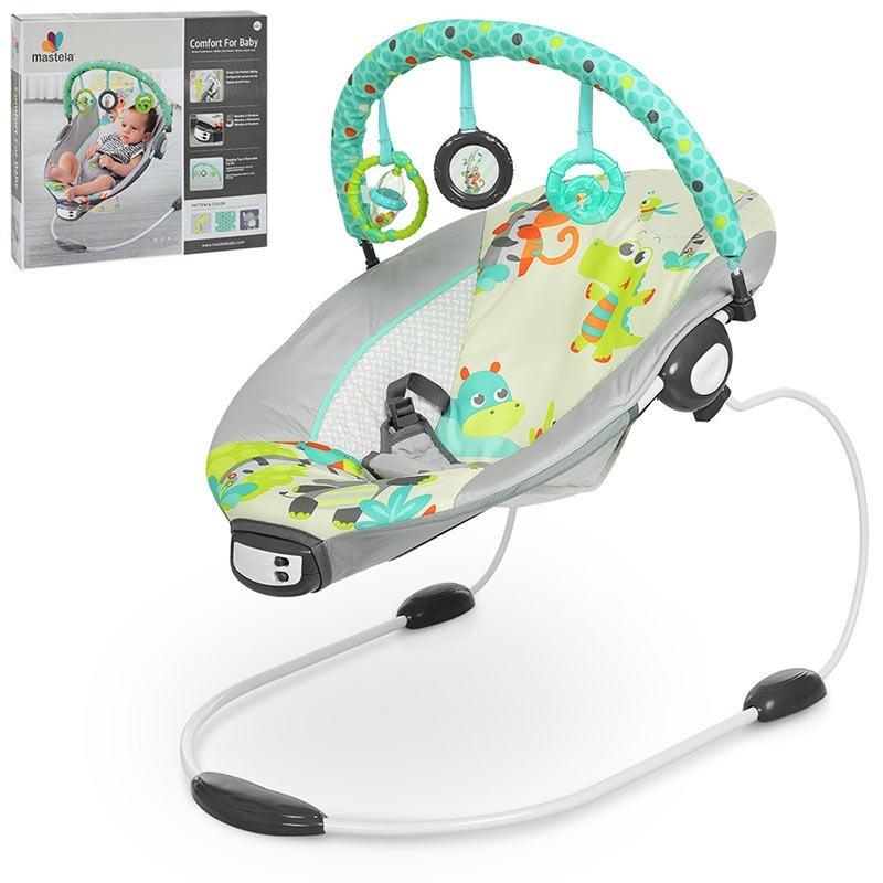 Шезлонг Bright Starts Safari Fun з режимом вібрації для дітей від народження ергономічне сидіння ‒ для максимального затишку і комфорту; стійкі, нековзні ніжки; режим вібрації; ігрова дуга з 2-ма підвісними іграшками знімається однією рукою для легкого доступу до дитини; регульований 3-точковий ремінь безпеки ціна:550