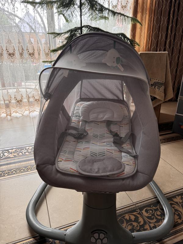 Купили на народження дитині Користувалися кілька місяців В ідеальному стані призначений від народження; 5 режимів заколисування; мобіль з 2-ма підвісними іграшками; Вбудовані мелодії, регулятор гучності; керування можна здійснювати на самому центрі або за допомогою пульта дистанційного керування; п'ятикутний ремінь безпеки; подушечка для малюка; таймер на 15,30 та 45 хв; живлення центру походить від мережі або від батарей (АА 4шт, в комплект не входять); від повербанку працює рятувала в блекаут Характеристики: Тип: Центр Матеріал виробу: льон, метал, пластик Комплектація: USB кабель 5-ти точкові ремені безпеки капюшон + москітна сітка матрац 64-35см Габаритні розміри: Розмір гойдалки (Д/Ш/В): 71см/68см/84см Розмір спального місця: 75см/35см Вага: 4.3 кг