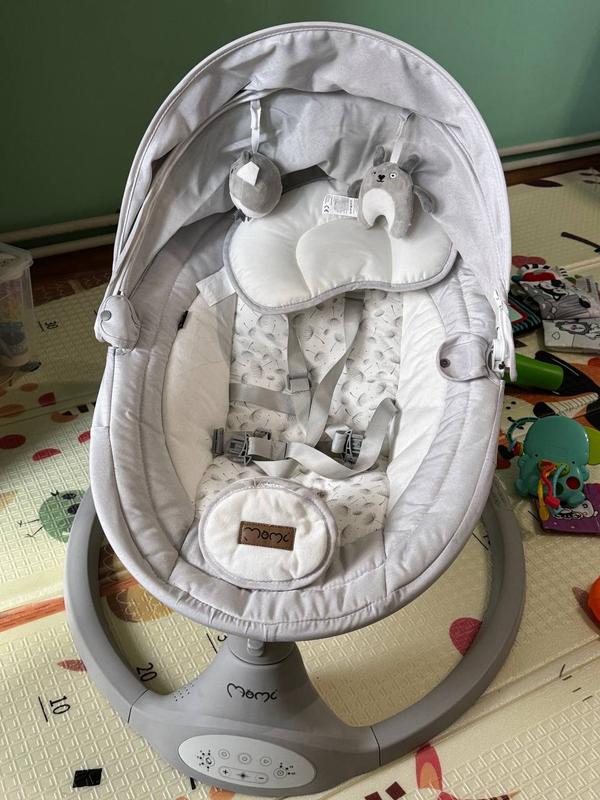 (Можливий торг)Заколисуючий центр MoMi Kenani - безпечний для малюка і зручний для мами. Практичний і багатофункціональний заколисуючий центр забезпечить комфорт вашому малюкові під час сну або неспання. Особливості: Стійка конструкція з алюмінію і сталі Легкий Знімна оббивка з можливістю машинного прання Модуль Bluetooth, що дає змогу відтворювати улюблену музику з телефона Два способи живлення заколисуючого центру від мережі або від акумулятора 5-ступінчасте регулювання заколисування Похитування відповідає природним рухам малюка в утробі матері 10 вбудованих мелодій з регулятором гучності Регулювання часу гойдання - 8, 15 або 30 хвилин 5-точкові регульовані ремені безпеки Козирок, що пристібається Москітна сітка Дві знімні іграшки на липучці М'яка подушка під голову Внутрішня частина виконана з плюшевого матеріалу Нековзні підкладки, що не ковзають Безшумна робота двигуна Пульт дистанційного керування Швидкий монтаж без використання інструментів Компактний розмір після складання