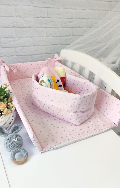 Новинка! Пеленатор - П - подібний Основа і борти - знімний поролон, білого кольору ( вищий сорт) Тканина - турецький Гліттер - 💯% бавовна Блискавка-білого кольору Зав'язки - широкі, котонові Заміри: ширина бортів - 10 см Денце: 40*65 см Можна використовувати в розкладеному і зібраному варіанті Непромакайка пелюшка знімна: на чотирьох липучках Білого кольору Виробництво Туреччина Кошик Прямокутний Тканина - Турецький Гліттер Заміри: Довжина - 30см Висота - 15 см у підвороті, повна - 20 см (регулюється за бажанням) Ширина- 16 см Варіанти: Пеленатор без пелюшки- клейонки - 740 грн З пелюшкою - клейонкою - 790 грн Кошик - 520 грн Комплект: Кошик+ Пеленатор без пелюшки - клейонки- 990 грн Кошик+ Пеленатор з пелюшкою клейонкою- 1090 грн
