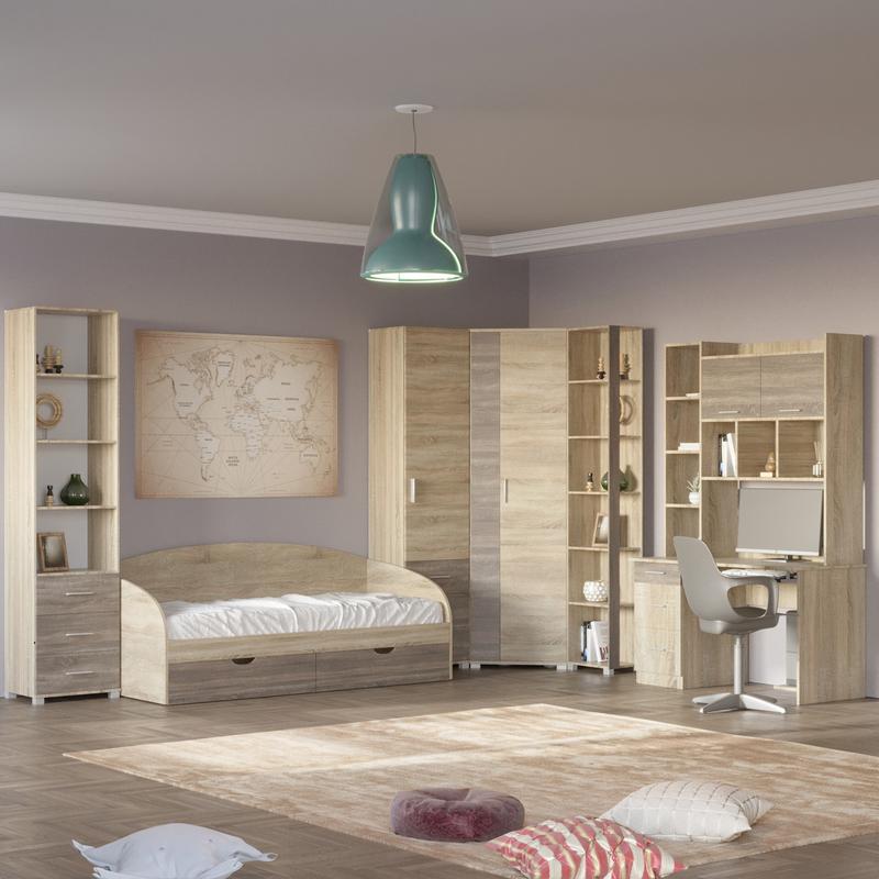Спальня детская эверест бриз комплект 5 (модульная - 6 элементов) сонома + трюфель (dtm-25...