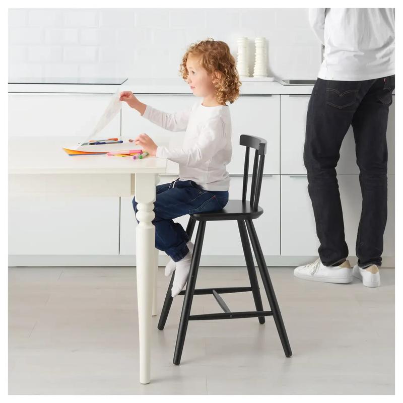 Розміри товару: Ширина: 41 см Глибина: 43 см Висота: 79 см Ширина сидіння: 28 см Глибина сидіння: 29 см Висота сидіння: 52 см Цей продукт потребує складання. Головні риси: Сидіння розташоване на необхідній висоті -- дитині зручно сидіти за обіднім столом. Дизайнер: IKEA of Sweden Розміри і вага упаковки: Упаковки: 1 Артикульний номер: 70253541 Ширина: 34 см Висота: 7 см Довжина: 60 см Вага: 4 кг Корисна інформація: Рекомендовано для дітей віком від 3 років. Інструкція з догляду: Протирати вологою тканиною. Використовуйте суху ганчірку для очищення. Для забезпечення стійкості підкручуйте ніжки у разі потреби. Матеріали та догляд: Сидіння: ДВП, Акрилова фарба Спинка: Формова фанера з бука, Акрилова фарба Ніжка: Масив бука, Акрилова фарба