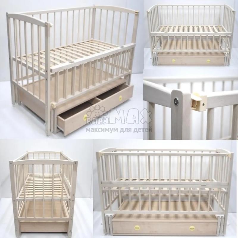 Ліжечко з маятником плюс матрас для немовлят жорсткий кокосовий, товщиною 6 см , наповнювач матраса кокос 5 шарів з водонепроникним наматрасником. Ліжечко майже нове, дитина спала лише декілька разів в ньому. Характеристики: 1. Матеріал: бук, ящик ДСП. 2. Положень дна 3 (від підлоги, коли ліжечко на маятнику): 32.5 см; 42.5 см; 52.5 см. 3. Відкидна боковина. 4. Максимальна вага навантаження 30 кг. 5. Вага ліжка 32 кг. 6. Розміри спального місця 120х60 см. 7. Внутрішні розміри ящика (ДхШхВ): 102х50х8 см. 8. Габарити в зібраному вигляді (ДхШхВ): 124х64.5х92.5 см. 9. Габарити в упаковці (ДхШхВ): 125x66x16 см. Особливості: 1. Поперечний маятниковий механізм із можливістю фіксації. 2. Без покриття (шліфоване дерево). 3. Закритий ящик на роликових направляючих.