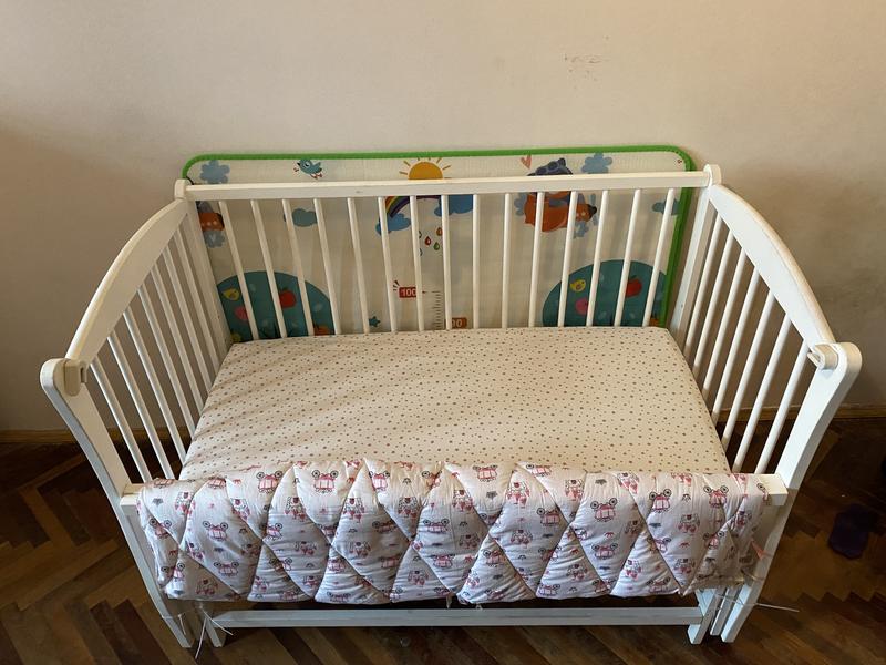 Продам дитяче ліжко з маятником та відкидним бортом білого кольору. Ліжко має три рівні. У комплекті-бортики двосторонні, матрац, 4 непромокаючі простині та дві звичайні простині (всі на гумках). З недоліків-сліди від зубчиків на одному борту (покажу фото). Дитина дуже любила своє ліжечко і без проблем спала всю ніч! 3300 грн Львів @*************