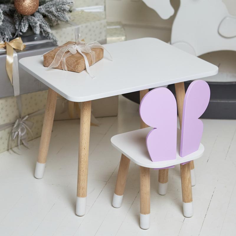 Дитячий білий прямокутний стіл та стільчик фіолетовий метелик з білим сидінням. Дитячий білий столик Характеристики: Стіл прямокутний: - Розмір (ВхДхШ): 46х60х45 см - Матеріал: Натуральне дерево та МДФ - Фарба: Екофарба. Не викликає алергії в діток Стільчик розміри: - Висота від підлоги -- 26 см. - Ширина -- 26 см. - Глибина -- 24 см. Особливості наших меблів 1. Цікавий дизайн 2. Просте збирання 3. Надійна та зручна у використанні конструкція 4. Підходить для навчання та ігор Виготовлений відповідно з ДСТУ для дітей 1 групи зросту (100-115 см) ⠀ Підходить для дітей від 1,5 до 7 років. ⠀