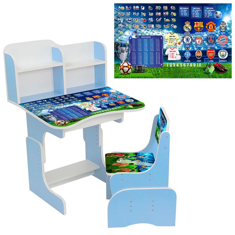 Гр парта шкільна "футбол" лдсп, колір блакитний, 69*45 см, + 1 стілець, з пеналом