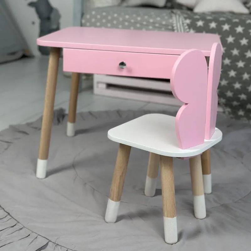 Детский столик со стульчиком бабочка розовый для девочек с ящиком для рисования и раскрасо...