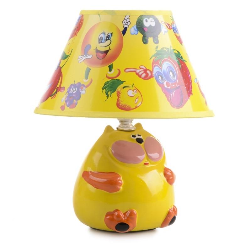 Представляем вашему вниманию новинку от ТМ BRILLE настольную лампу для детской комнаты TP-018 E14 YL. Лампа яркая, красочная, компактная, ее можно поставить как на тумбочку возле кровати, так и на письменный стол. Если разместить настольную лампу возле кровати, в таком случае она будет играть роль ночника. Материалами для изготовления осветительного прибора послужили керамика и картон. Его конструкция состоит из керамического основания, выполненного в форме забавного кота и одного картонного плафона-абажура формы срезанного конуса. Кот окрашен в желтый цвет, лапы у него оранжевые, а щеки розовые. Кот чем-то напоминает кота из советского мультфильма Возвращение блудного попугая, такой же пышный и довольный. С основанием разобрались, что касается плафона, то он украшен изображениями фруктов. Тут и виноград, и груша, и клубника, и яблоко, и лимон. Только вот фрукты, не простые, а с ногами, руками и глазами. Намудрили мастера с дизайном. Для работы настольной лампы необходимо использовать одну лампочку с цоколем Е14 мощностью 40 Вт. Выключатель находится на шнуре. Мягкий, приятный для восприятия свет настольной лампы сделает пребывание вашего ребенка в своей спальне максимально комфортным.