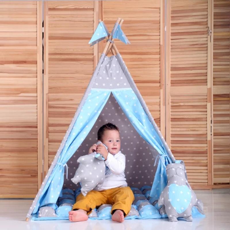 10 ПРИЧИН КУПИТИ У НАС: - НАТУРАЛЬНІ МАТЕРІАЛИ. Вігвам виготовлений зі 100% бавовни, повністю безпечний для Вашої дитини. - КОМФОРТ РЕБЕНКА. Килимок Бобон завтовшки 8 см. складається з 64 подушок із гіпоалергенним наповнювачем "аеропух". Має додатковий теплоізоляційний шар на нижньому боці, що дає змогу зберегти тепло навіть у разі довгої гри на кахельній або мармуровій підлозі. Двосторонній стьобаний килимок виконується у кольорах вігваму та наповнюється високоякісним синтепоном, його товщина становить 4 см. Завдяки наявності вистьобу цей килимок дуже практичний, його можна використовувати на обидві сторони, а також прати в пральній машине. М'який килимок виконується у кольорах вігваму, має стьобання у формі квадратів із наповнювачем "аеропух". Товщина м'якого килимка становить 8 см, він може використовуватися на дві сторони. - БЕЗПЕЧНИЙ КАРКАС. Дерев'яний збірний (кожна стійка складається з двох половинок), або цілісний каркас ретельно відшліфований, не піддається хімічному та лако-червоному обробленню. Завдяки тому, що немає гострих кутів, безпечний для дитини, не пошкодить підлогове покриття. - НАДІЙНА КОНСТРУКЦІЯ. Наявність отворів у каркасі та спеціальних зав'язок на килимку забезпечить надійну фіксацію конструкції вігваму та килимка. Це запобігає ненавмисному складанню конструкції під час активної гри. - ІНСТРУКЦІЯ ЗБОРКЕ. Наявність інструкції допомагає правильно та швидко зібрати вігвам. - ВНИМАНИЕ К МЕЛОЧАМ. Двері вігваму виготовлені з подвійної тканини, можуть фіксуватися у відкритому положенні. Вікно має рамку зі шторкою-жалюзі на зав'язках. - РОЗМІРИ. Залежно від віку дитини є можливість вибору оптимального розміру вігваму, а повномірні декоративні подушки можуть використовуватися як для гри, так і відпочинку. - ЗРУЧНІСТЬ ТРАНСПОРТУВАННЯ. Ви можете взяти із собою вігвам у подорож завдяки складеному каркасу. - ЗРУЧНІСТЬ ЗБЕРІГАННЯ. У комплекті з вігвом Ви отримуєте сумку для зберігання текстилю й окремий чохол для каркаса. - ГАРАНТІЯ ПОВІТРАТА ДЕНЕГ. Перед відправленням усі вігвами проходять дворівневу перевірку. Якщо товар з якоїсь причини не підходить, Ви маєте можливість його повернути впродовж 14 днів із моменту купівлі. У КОМПЛЕКТ ВХОДИТЬ: - Вігвам із віконцем; - Дерев'яний каркас; - Інструкція зі збирання; - Чохол для каркаса. Здійсніть мрію дитини та подаруйте їй особисте містечко для проведення часу. Маленький будиночок уже точно не залишиться без діла. Сучасна іграшка дасть малюкові почуття захищеності та спокою. Такий європейський намет підійде навіть для найменших. Діти просто обожнюють гратися в шаньянах, ховатися і просто проводити час у затишному місці. Дуже важливо, щоб ця частина ігрової зони була безпечною та надійною. У нас Ви можете знайти прекрасний дитячий вігвам, який потішить і Вас, і Вашу дитину.