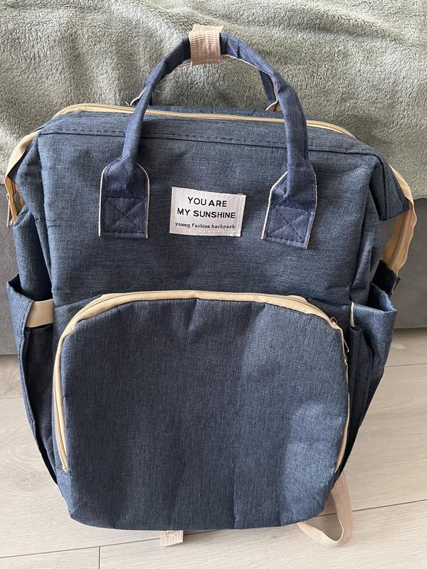 Стан новий! Дуже місткий, має 2 відділення основних, одне з яких розкладається, щоб перевдягнути малючка, дуже зручно👍 Є 2 бокові кишені, в т.ч для швидкого доступу до серветок. Є відділення з переду з фольгованими карманчиками, для їжі. Можна носити як сумку в руці або на плечі, також є лямки щоб чіпляти на візочок. Стан ідеальний. На одній шлейці трішки підшито, не значний дефект, на носіння не впливає, і не видно з низу. До замовлення подарунок ♥️