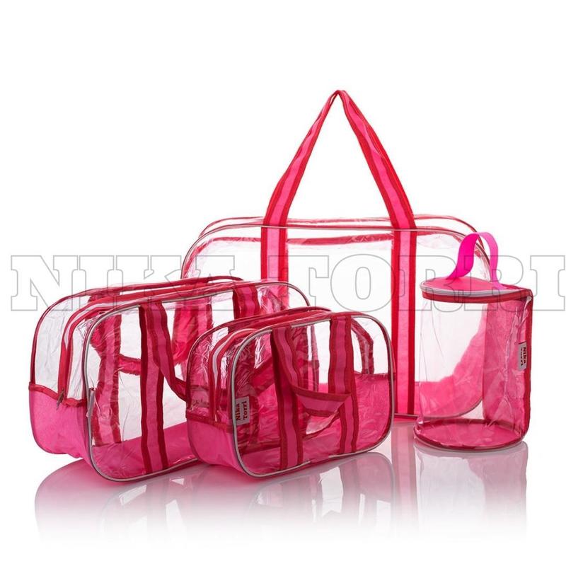 Прозрачные сумки в роддом (s, m, l) + органайзер - цилиндр малина