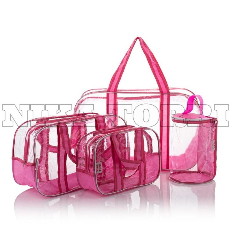 Прозрачные сумки в роддом (s, m, l) + органайзер - цилиндр розовый
