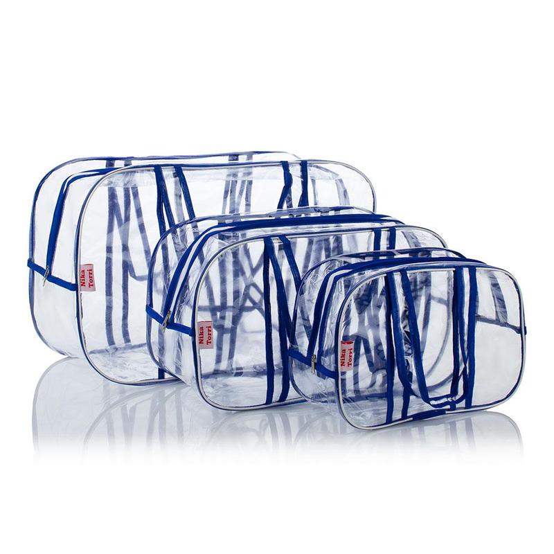 Набір прозорих сумок у пологовий будинок з прозорими ручками nika torri (s, m, l) синій