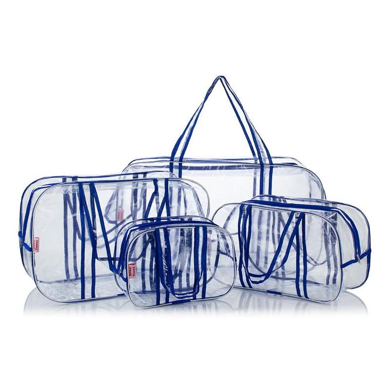 Набір прозорих сумок (s, m, l, xl) з прозорими ручками синій