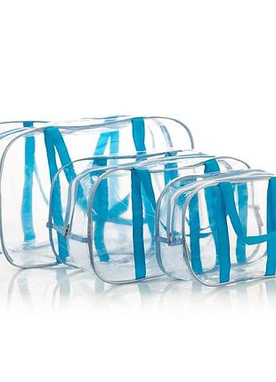 Набір прозорих сумок у пологовий будинок з ремінними ручками nika torri (s, m, l) блакитни...