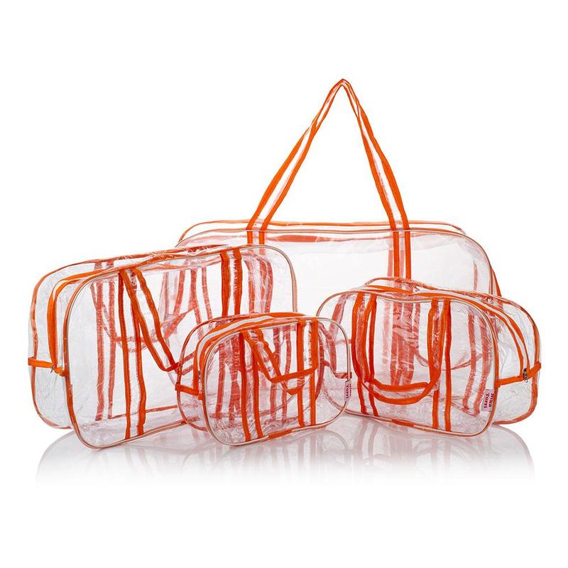 Набір прозорих сумок (s, m, l, xl) з прозорими ручками помаранчевий