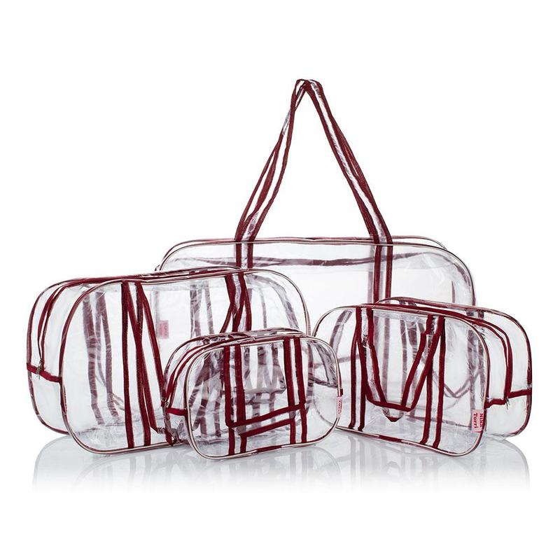 Набір прозорих сумок (s, m, l, xl) з прозорими ручками марсала