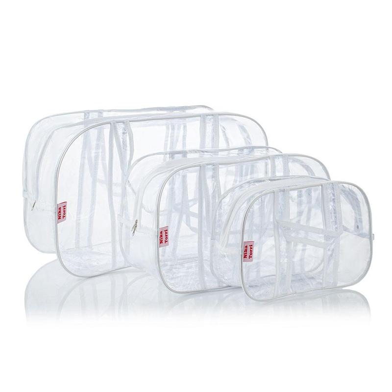 Набір прозорих сумок у пологовий будинок з прозорими ручками nika torri (s, m, l) білий