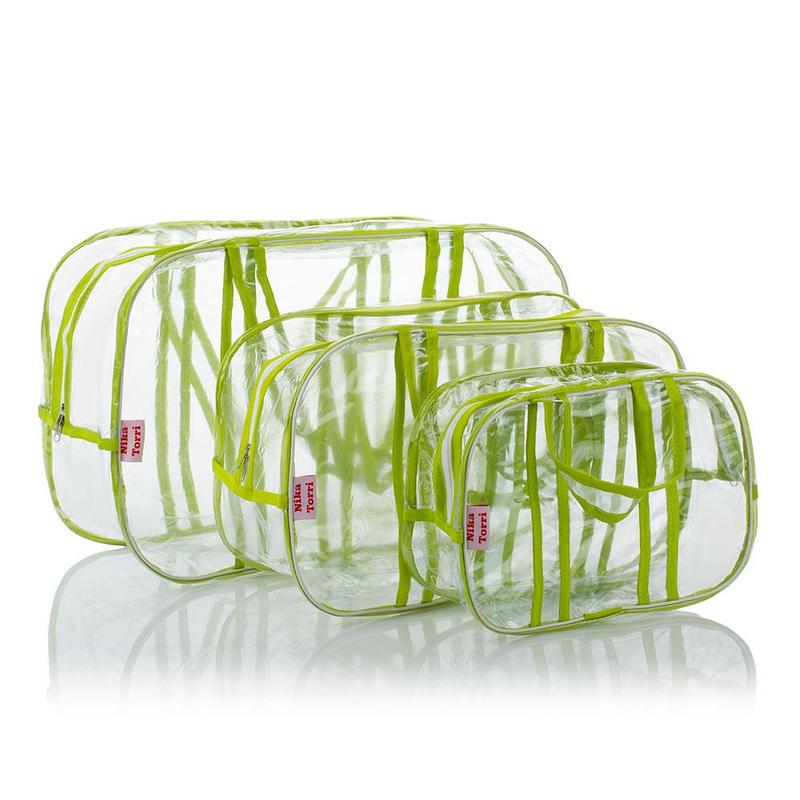 Набір прозорих сумок у пологовий будинок з прозорими ручками nika torri (s, m, l) лайм