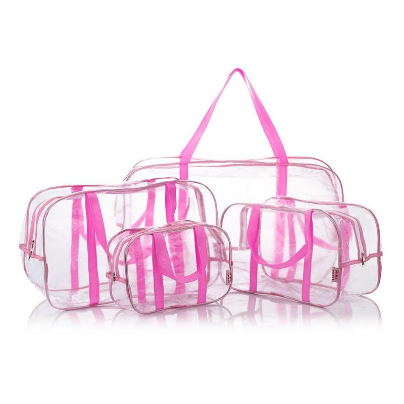 Набір прозорих сумок (s, m, l, xl) з ремінними ручками рожевий