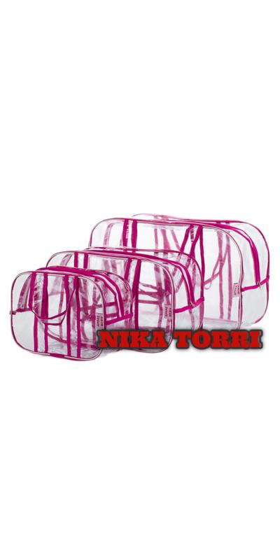 Набір прозорих сумок у пологовий будинок з прозорими ручками nika torri (s, m, l) малина