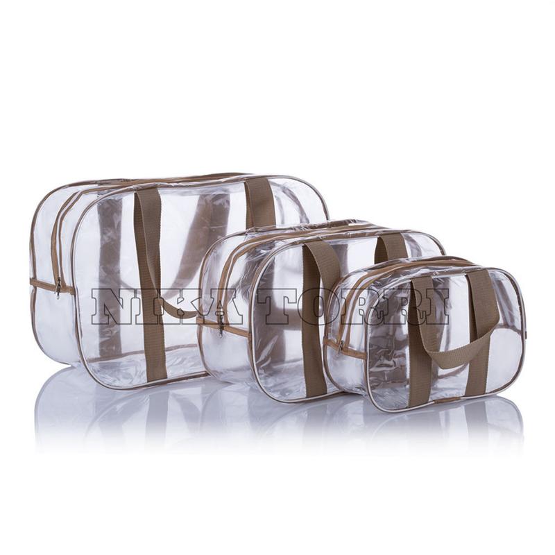 Набор прозрачных сумок в роддом с ременными ручками nika torri (s, m, l) бежевый