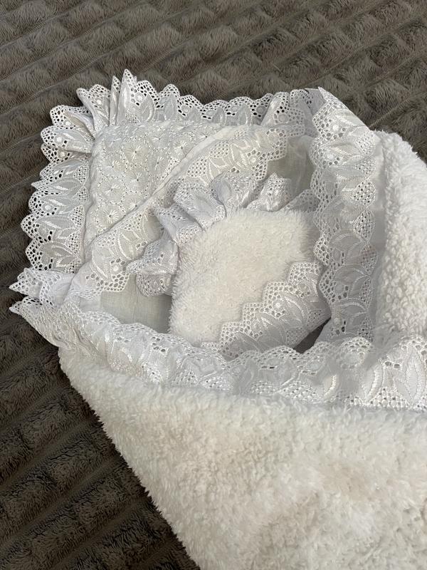 Тепленький конверт на виписку з пологового. Дуже мʼякий та гарно виглядає, стан чудовий.