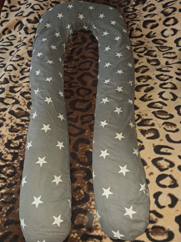 В користуванні була 4місяці. Розмір на 170см. Наволочка натуральна, знімається, на блискавці. Трохи потерлась.Фото додала. При бажанні можна замінити. Наповнювач холофайбер. Наперник нейлон, теж на блискавці.Є доступ до наповнювача,щоб можна зробити подушку м'якшою за необхідністю.