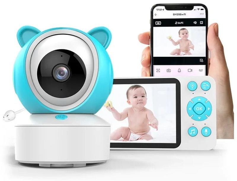 Відеоняня WIFI C8 з кріпленням і великим екраном, діагональ якого становить 12,7 см (п'ять дюймів) і поворотною камерою, керувати якою можна віддалено. Може працювати в режимі економії енергії та включатися при виявленні звуку (VOX) або руху навколо камери. При цих же подіях надходить пуш-повідомлення на смартфоні, якщо ви підключили відеоняню до домашньої мережі Wi-Fi. Дитячий блок (камера) відрізняється привабливим дизайном на радість малюкові і батькам. підключити до портативного акумулятора (пауер банк). Це надійна відеоняня від відомого виробника дитячих товарів, яка забезпечує безперервний контроль вашої дитини під час сну або гри, своєчасно сповіщаючи батьків, коли їй потрібна увага. Особливості відеоняні C8: - кольоровий дисплей, діагональ 12,7 см (5 дюймів); - Висока якість зображення та HD-звук; - монітор з HD 1080p LCD дисплеєм; - Камера високої роздільної здатності 2K 2Mpx (1020x1080 px); - безперервний моніторинг у режимі 24/7; - датчик звуку, VOX-режим активації монітора при виявленні плачу/звуку з налаштуванням чутливості; - датчик руху, режим активації монітора при виявленні руху з налаштуванням чутливості до інтенсивності руху; - цифровий зв'язок із системою захисту від перешкод та подолання перешкод; - дальність власного зв'язку між блоками може досягати 500 м за оптимальних умов; - можливість підключення до домашньої мережі Wi-Fi для моніторингу через додаток Tuya з екрана смартфона/планшета на необмеженій відстані; - Стабільний та функціональний додаток для мобільних пристроїв; - підтримуються смартфони планшети Android та iOS; - поворотна камера з широким оглядом при обертанні по вертикалі та горизонталі, керувати обертанням можна віддалено з екрана батьківського блоку або мобільного пристрою; - нічне бачення завдяки інфрачервоному підсвічуванню, яке працює у спектрі непомітному для людського ока, тому не заважає малюку спати; - Камера відеоняні прикрашена симпатичними вушками, що надає привабливості та відмінно вписується в інтер'єр будь-якої дитячої кімнати. - Камеру можна розмістити на будь-якій горизонтальній поверхні або закріпити практично на будь-що за допомогою кріплення (при кріпленні дотримуйтесь заходів безпеки, щоб дитина не змогла дотягнутися до камери та шнура живлення); - Батьківський блок живиться від розетки або вбудованого ємного акумулятора 3000 mAh; - Дитячий блок працює від мережі або від звичайного портативного акумулятора (Power Bank, об'єм 10 000 mAh забезпечує автономну роботу камери до 24 годин, тривалість залежить від інтенсивності та режиму використання); - Функція двостороннього зв'язку призначена для спілкування з малюком на віддаленій відстані за допомогою батьківського блоку або мобільного пристрою, щоб спробувати заспокоїти його, якщо малюк розплакався; - термометр на камері для контролю температури в дитячій з оповіщенням про вихід температури за межі заданого діапазону; - вбудовані колискові мелодії, що програються на камері; - таймер годівлі; - функція наближення (цифровий зум); - функція фотографування та запису відео на карту пам'яті на батьківському блоці або в додатку на мобільному пристрої; - Слоти для картки пам'яті до 128 Гб на батьківському блоці (для запису з батьківського блоку) та на камері (для запису в додатку). Підтримуються картки MicroSDXC до 128 Гб, рекомендований клас швидкості 6 або 10, але не нижче 4. - оповіщення про вихі