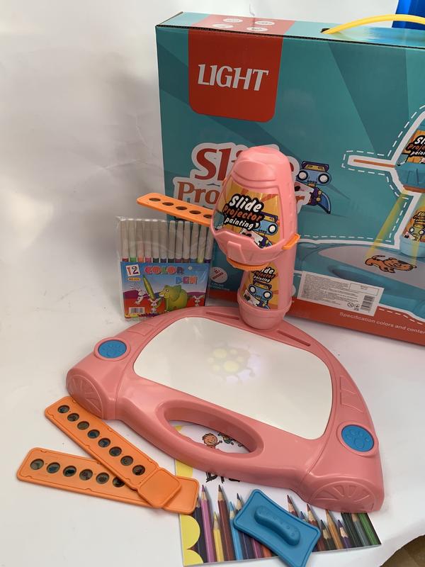 - Два кольори - дошка з ручкою - фломастери - проєктор для малювання - альбомчик - 24 слайди Розміри:19.5 x 28.0 x 22.5 Розмір упаковки:40.50 x 7.00 x 27.80.