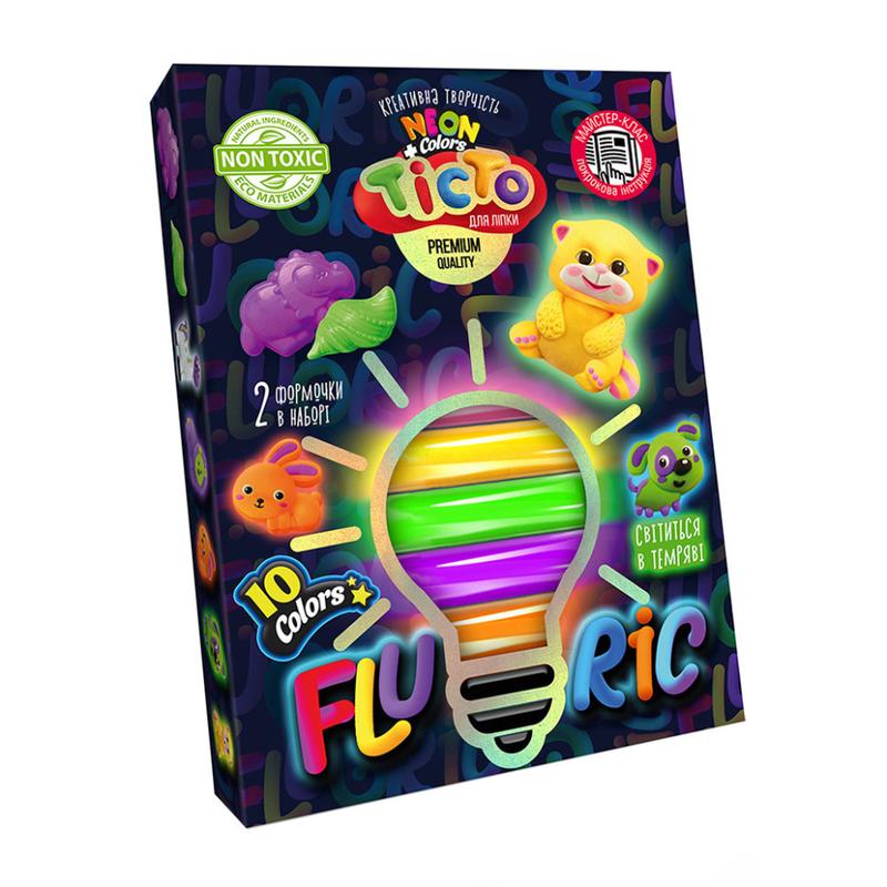 Креативна творчість "Тісто для ліплення "FLUORIC" коробка 10 кольорів. Добре тримає форму, дає змогу опрацьовувати досить дрібні деталі скульптури. Не липне до рук і поверхні. Ніжність і пластичність матеріалу сприяє розвитку тактильних відчуттів і дрібної моторики рук дитини. На відкритому повітрі тісто тверде упродовж 24 годин для збереження еластичності зберігати в недоступному для повітря місці.Яскраве, світне в темряві та не токсичне.Вістр 3+.