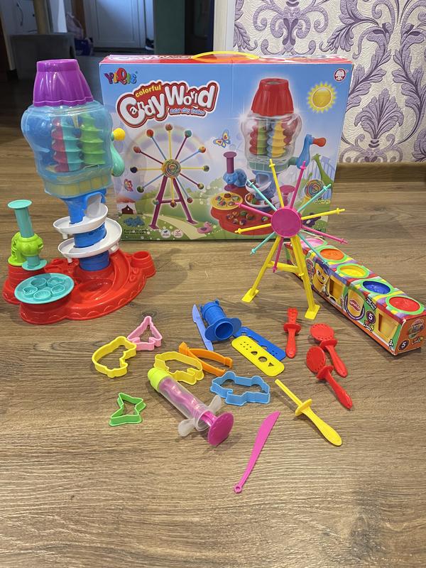 Набір : машина для цукерок , інструменти, все як на фото. Все в ідеальному стані, вам лишиться докупити тільки пластилін в ванночках або тісто для ліплення. Дітям дуже подобається ця гра❤️ На фото пластиліну немає! Пусті контейнери, які знадобляться вам якщо будете купувати пластилін чи тісто в целофані, таким чином пластилін не засохне!