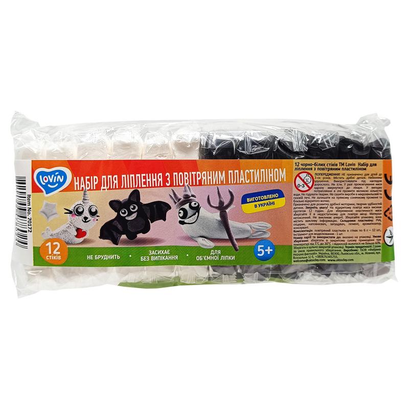 Набір для ліплення з повітряним пластиліном 70172, 12 чорно-білих стіків