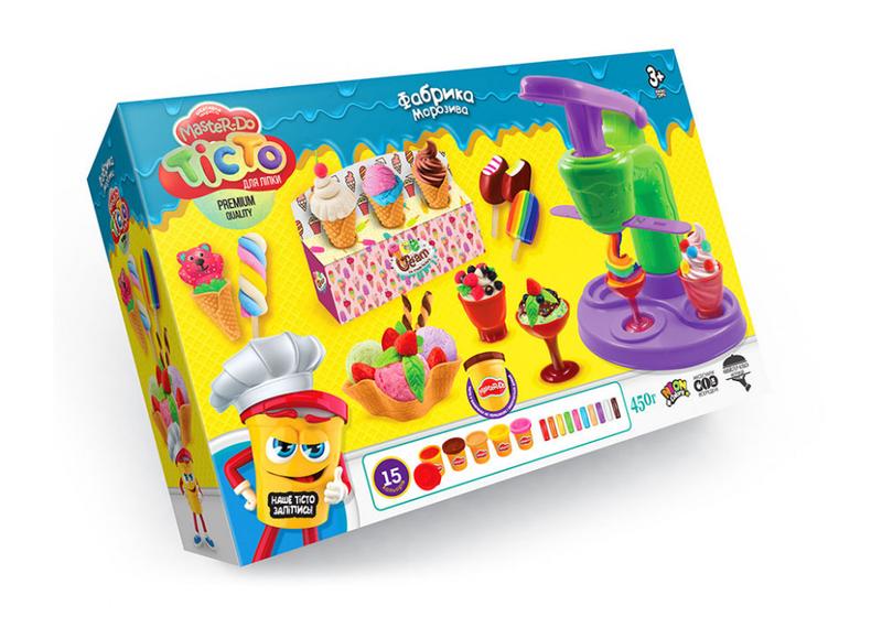 Набір для ліплення Danko toys "Фабрика Морозива" Master-Do TMD-06-01 - це креативний набір іграшок, що пропонує дітям можливість створювати свої власні морозива з пластиліну. У наборі міститься 15 різнокольорових пластилінових глибок, кожна важить 30 грамів. Також до набору входить верстат для виготовлення морозива, який дає змогу створювати різні форми та текстури морозива. Вітрина для морозива дає змогу дітям виставляти свої творіння і створювати свою власну морозиво вітрину. Комплект із трьох стеків дає можливість створювати різноманітні шари морозива. До набору також входять дерев'яні палички для прикрашання та формочка для створення основи морозива. Текстурайзер "вафлі" дає змогу додати реалістичні деталі до морозива. Каталка в наборі допоможе дітям легко переміщатися з місця на місце зі своїми творіннями. До комплекту також входить інструкція, яка допоможе дітям почати гратися і створювати одразу ж. Набір для ліплення Danko toys "Фабрика Морозива" Master-Do TMD-06-01 є чудовим вибором для розвитку творчих навичок та уяви у дітей.